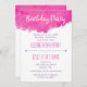 Una invitación de cumpleaños de diseño. Un bonito diseño femenino con una mancha de pintura de color rosa claro.