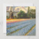 Tarjeta 2 de 3 floridos de primavera Holanda paisaje de campo con molino de viento pintando tríptico panel de arte 2 de 3 tarjetas de invitación impresa con hiacintos azules coloridos, tulipanes y daffodils amarillos flores narcisos y un molino de viento holandés.