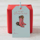 Esta etiqueta de regalo To/From, un país festivo, muestra un par de botas de navidades de vaquera dibujadas a mano, sentadas entre pinecones, pinos y bayas huecas en el frente. La parte posterior presenta un patrón divertido con estos mismos elementos occidentales. Elegante fondo azul suave.