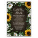 Las naves Insert Boda de girasol rústico rural cuentan con un fondo de madera de granero adornado con daisies acuarelas, girasoles, vegetación, aliento de bebé y lirio del valle.