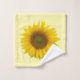 Toalla de baño Sunflower Blooms colocada sobre un fondo blanco y colores marrones y amarillos. Una decoración de estilo rústico con una temática veraniega.