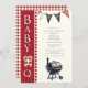 Acoger una memorable ducha de bebé para parejas con esta encantadora invitación temática de "Baby Q". Con un vibrante patrón de gingham rojo y blanco, este diseño capta la esencia de una celebración de barbacoa en el patio trasero. El ilustracion de la pieza central incluye una parrilla de barbacoa al estilo vintage, lista para encenderse, junto con un dulce enterizo en la misma tira clásica de gingham. Es una manera encantadora y única de anunciar tu celebración e invitar a los seres queridos a compartir la alegría. Perfecto para una reunión relajada y divertida, esta invitación asegura que sus invitados se sientan bienvenidos y emocionados por el evento.