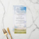 Romántico menú boda de ensueño, con un paisaje acuático con nubes.