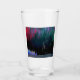 Paisaje moderno con colores vivos que muestran la escena del bosque con luces del norte o aurora boreal y cielo estrellado.