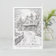 Paisaje de cabaña de invierno Arte de Navidad para colorear Tarjeta de vacaciones para niños y adultos. Puede editar/eliminar el texto.