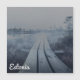 Pintado de niebla sobre la plataforma con sendero de madera, pequeños estanques y pinos. Senderismo con pasarela de madera que atraviesa el río.
