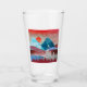Un hermoso paisaje abstracto con escena montañosa y forestal y un águila aterrizando en un árbol en vibrantes tonalidades de azul, cian, plata y crimson.