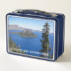 Preserve recuerdos de sus viajes a Oregón con esta metalizado caja de almuerzo que presenta una pintoresca foto paisajística del lago azul zafiro en el Parque Nacional Crater Lake. Seleccione el color de su caja de almuerzo.