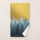 Un bonito diseño con árboles en un bosque y un cielo dorado. Los tonos de color incluyen tonos azules neutros y dorados. Un diseño rústico ideal para el otoño, otoño, invierno y la temporada festiva.