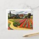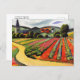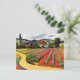 Postal con la pintura, Paisaje en Tegernsee, de August Macke (1887-1914). Era un artista expresionista alemán que murió durante la Primera Guerra Mundial y había sido un miembro líder del grupo Der Blaue Reiter. Un camino de tierra a través de un paisaje de campo cálidamente iluminado de campos agrícolas y casas, con un campanario en el fondo. Tegernsee es un pueblo de Baviera, Alemania.