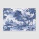 Bonita escena de tela azul y blanca con toques florales.