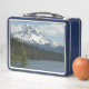 ¡Por la naturaleza y por el gran ventilador! Lleve sus comidas al trabajo o a la escuela con esta metalizado caja de almuerzo que presenta una fotografía pintoresca del Monte Hood cubierto de nieve, junto con un lago azul y un paisaje boscoso circundante en el estado noroeste del Pacífico de Oregón. Seleccione el color de su caja de almuerzo.