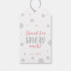Esta etiqueta de agradecimiento presenta copos de nieve plateados y tipografía adorable "¡Gracias muchísima nieve!". Perfecta para favores de fiesta con tema de paisaje invernal. Más artículos coincidentes disponibles en mi colección Paisaje Invernal. (invitación, tarjeta de agradecimiento, etiqueta de agradecimiento, banderín y más)