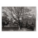 Una foto de tono sutilmente cálido y muy detallada tomada en Bute Park, Cardiff, Gales, Reino Unido en un brillante día de finales de octubre. A la derecha se ve el canal Dock Feeder con un roble en el centro que se extiende entre dos senderos que conducen en diferentes direcciones. Una bonita foto en blanco y negro con muchos detalles y una amplia gama tonal.