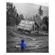 Hermoso paisaje Minimalista sereno de fotografía en blanco y negro de una antigua aldea con el color selectivo azul de una mujer con la espalda volteada al ARTE IMPRESIONANTE DE LA FOTO DE LA Cámara. #ruralhouse #landscapephotography #minimalistphotography #blackandwhitephotography #monocromephotography #selectivecolor