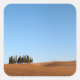 Pegatina cuadrado de un pequeño grupo de cipreses en un pequeño bosque entre las ruedosas colinas en otoño en el Val d'Orcia, Toscana, Italia.