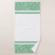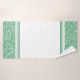 Patrón paisley blanco vintage sobre un fondo verde con toques de rayas verdes.