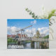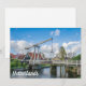 Pintura de la calle y de los tradicionales holandeses levantando puente de madera en el pueblo de pescadores de Volendam, Holanda del Norte, Holanda...