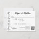Esta tarjeta RSVP coordina con nuestra invitación occidental moderna para un boda rústico de moda. Los elementos de diseño incluyen paisley y diamantes partes tradicionales de un patrón de bandana, pero esto es vaquero y vaquera moderno. Diseño mínimo con sus nombres en script. Un código QR para respuestas electrónicas mantiene las cosas actualizadas. Blanco con acentos negros y grises. Los colores se pueden personalizar en la Herramienta de diseño. Todo el texto se puede personalizar en la herramienta Diseño