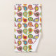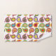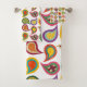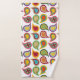 Este conjunto de toallas tiene un diseño moderno de mediados de siglo de paisajes recubiertos de colores retro con una capa que tiene un patrón atómico.