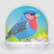 Un pájaro vibrante se sienta en una rama floreciente en medio de una escena floral de colores vivos, con mariposas revoloteando por ahí, creando un ambiente natural vívido y alegre perfecto para las imágenes primaverales.