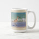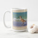 Esta ave costera es un zarapito joven que mira para su bocado del almuerzo en las aguas de la resaca en la playa de la Florida. La imagen está a ambos lados de la taza para su disfrute. Disfrute de un pequeño pedazo de la playa mientras que usted bebe su bebida.