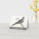 La parte delantera de este estilo vintage muestra el mensaje apreciativo "¡Gracias!" en un guión como texto, junto con la representación de un pájaro encaramado en una rama de árbol. El interior presenta un mensaje personalizado de apreciación. Una tarjeta como esta podría ser usada para mostrar gratitud por algo que alguien ha hecho.