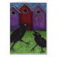 Aves negras jugando frente a su nuevo condominio. Pintura original pastel de Sheryl Karas.