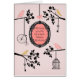 ¡Una tarjeta de cumpleaños rosada polvorienta linda y caprichosa que ofrece un mensaje del cumpleaños dentro de un marco del vintage, de un birdcage, y de una bicicleta del penique-comino/del alto-policía motorizado - colgando de ramas pintorescas! ¡Una obra clásica pero muy una tarjeta juguetona!