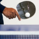 Un águila calva con una punta de aleta pastoreando la superficie de un lago. Foto de Richard Lee.