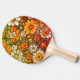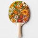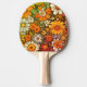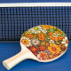 Esta paleta de Ping Pong tiene un toque vintage pero también tiene una apariencia única de flores digitales en toda la paleta que tienen un aspecto animado. Las flores varían en color desde blanco hasta un naranja intenso y hojas verdes por todas partes. El diseño fue creado en una computadora utilizando software específico y superposiciones para obtener la apariencia final.