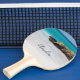 Paddle personalizado de ping pong con una hermosa fotografía. Una playa de arena blanca, con un suave surf. El agua tropical turquesa rodea una roca encajonada.