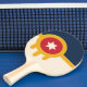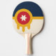 Ping Pong Paddle con un diseño con la bandera de Tulsa, Oklahoma. Bandera beige y azul marino con un escudo Osage dorado que contiene un círculo rojo y una estrella beige de seis puntas