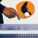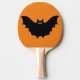 Ping Pong Paddle impreso con la imagen de diseño de arte de Halloween Black Bat de TheFabricSeal en Zazzle.com es un lindo y simple estilo de ilustracion de arte de murciélago negro con estilo de silueta de dibujo con peekaboo peering ojos khaki verde y naranja de calabaza mirando a amigos y presas por igual y una fresca noche oscura de aventuras de Halloween, duendes, y trucos y dulces.