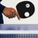 La imagen de una bola de ping pong blanca personalizada con el nombre de la letra inicial sobre un negro (color personalizado)