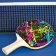 Luminoso manto de pintura de neón, este diseño presenta un patrón de manchas de pintura de neón brillante sobre un fondo negro.