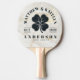 Calacatta Gold Irish Lucky Clover Wedding Crest Ping Pong Paddle carries a graceful blend of celebratory charm and timeless symbolism. The marble inspired backdrop traced with flowing gold veining creates a radiant visual presence while the lucky clover wedding crest motif evokes fortune, unity, and the promise of a joyful path shared together. Perfect for wedding festivities, receptions, and gatherings where friends and family come together to celebrate a meaningful occasion, it adds a playful yet heartfelt spirit to the atmosphere. Each serve and return becomes part of the moment, turning a simple game of ping pong into a lively exchange of laughter, friendly competition, and memories that reflect the happiness of the day.