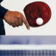 Ping Pong Paddle con un cráneo empapado con un motivo de color de sangre.