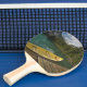 Pala De Ping Pong Canoe estacionado en un muelle a lo largo del lago
