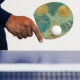 Los círculos azules y amarillos pueblan este asombroso trabajo de Megan Meagher. Un verde lima clave sirve como fondo para los círculos coloridos. ¡Obtén una copia de esta gran impresión hoy!