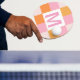 Custom monogram elegant pink  and yellow geometric pattern ping pong paddle , cute square pink white and yellow monogram ping pong paddle.