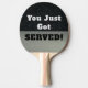 Placa de diamante negro y diseño plateado con la chispeante charla "¡Te acaban de servir!". Este es un gran regalo para el ávido jugador de ping pong.