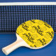 Se ríen en la cancha con esta pádel de tenis de mesa, que muestra un patrón repetido del juego de palabras "we be jammin", entre corchetes sonrientes con adorables frascos en miniatura que bailan alegremente sobre un fondo amarillo brillante. El reverso muestra un diseño idéntico. Diseño, ilustración y diseño © W.H. Sim. Ver más en zazzle.com/wordsofwhimsy