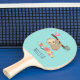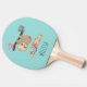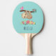 Ping pong paddle con un ilustracion de un lindo lazo marrón colgando boca abajo. Este pequeño y gracioso se aferra a una rama que tiene un pequeño pájaro rosado a un lado de la rama y un ramo de rosas al estilo de doodle al otro lado. Debajo de ellos hay un arreglo de flores pintadas a mano de colores. Este adorable perezoso también tiene mejillas rosadas y 3 lindos corazoncitos en el trasero.