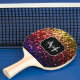 El arcoiris enciende el monograma Ping Pong Paddle. Personalice el brillante equipo de ping-pong al aire libre con su nombre inicial. Hermosos arcoiris amarillos de color púrpura y brillantes chispas. ¡Foto de destellos amarillos, rojos, morados y coloridos que no son purpurinas reales!