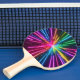 El Paddle Cosmic Burst Ping Pong tiene ramas radiantes de color neón que explotan desde el centro hacia el exterior.