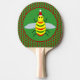 Esta impresionante paddle de ping pong tiene una linda abeja amarilla con ojos negros brillantes y piernas negras. Las antenas son verdes y las rayas de la abeja alternan entre verde y amarillo. La abeja está usando un gorra rojo y blanco y parece estar lista para celebrar a los Navidades. El fondo está formado por flores de la posina roja bonito, cada una con un centro amarillo chillón.