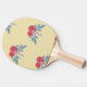 Pala De Ping Pong Flores rojas y hojas verdes en marrón