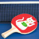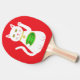 Este impresionante Ping Pong Paddle presenta una imagen de diseño gráfico de un afortunado gato oriental blanco ondulado. El gato tiene hermosos ojos de oro y lleva puesto un medallón de oro en el cuello. El gato tiene orejas y bigotes rosas. Este lindo gatito sostiene una ficha de oro con entrada de jade verde y un mensaje en texto dorado que dice "Buena suerte".