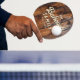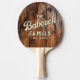 Pala De Ping Pong Glossy Stained Dark Wood Retro Family Name & Year